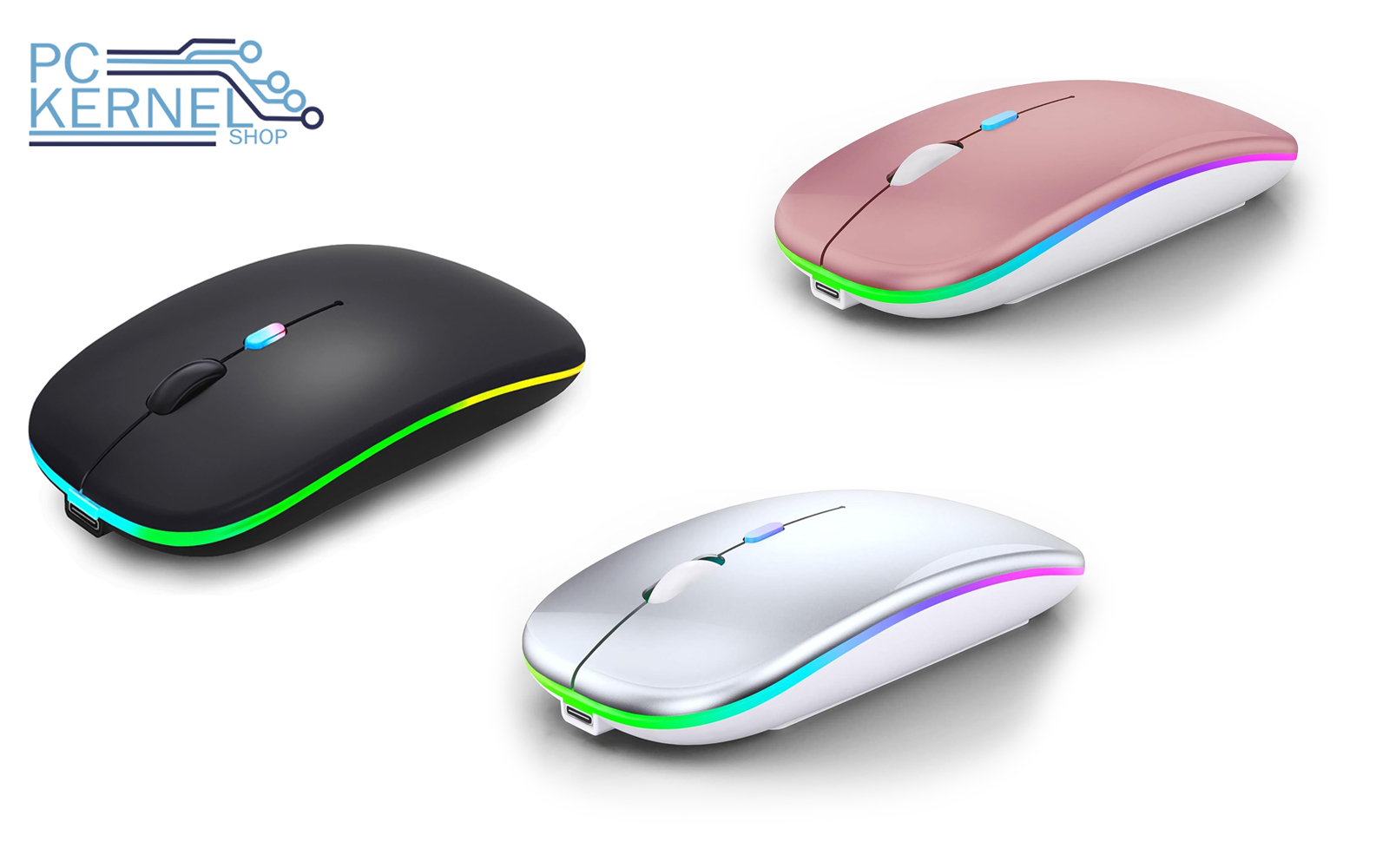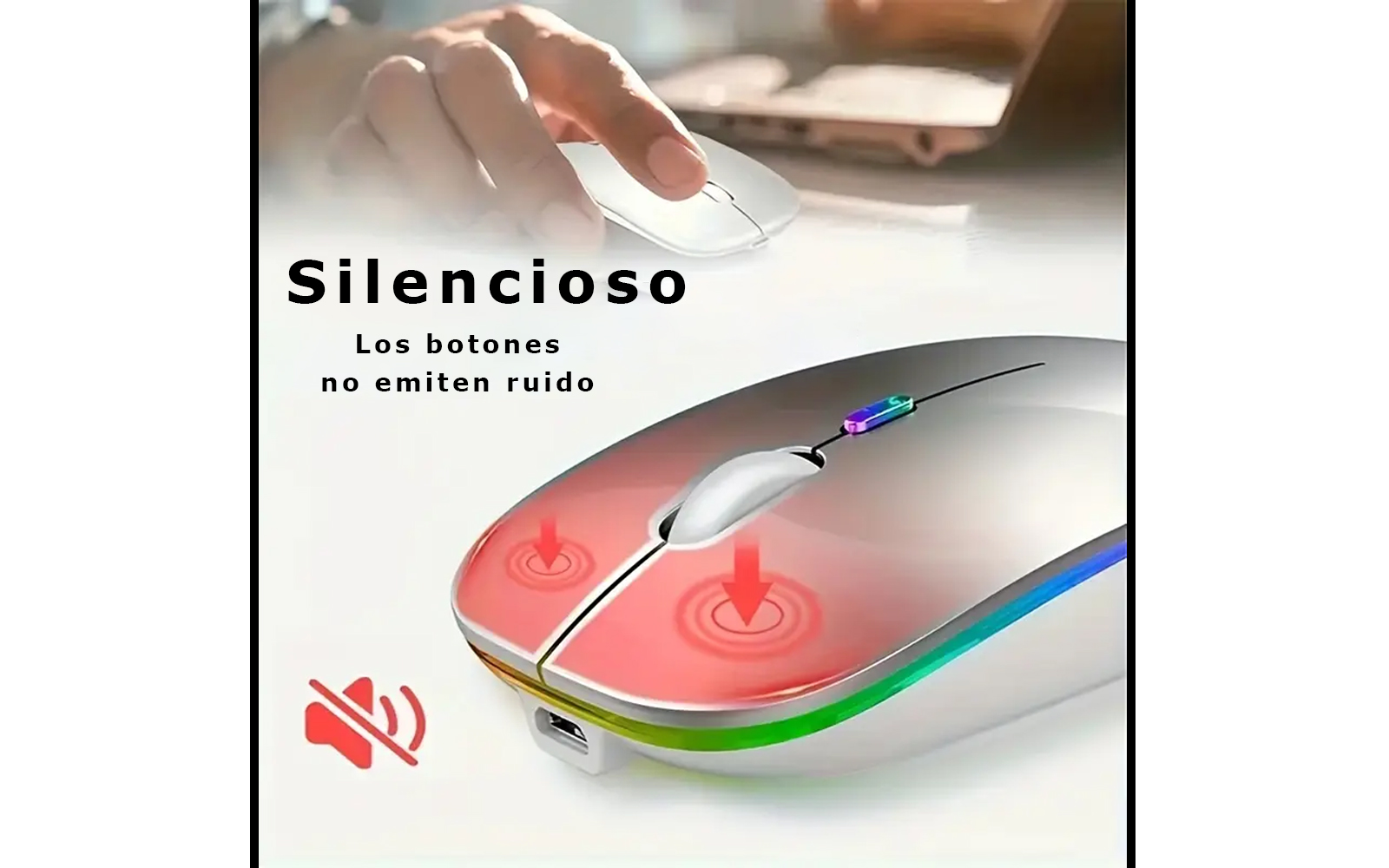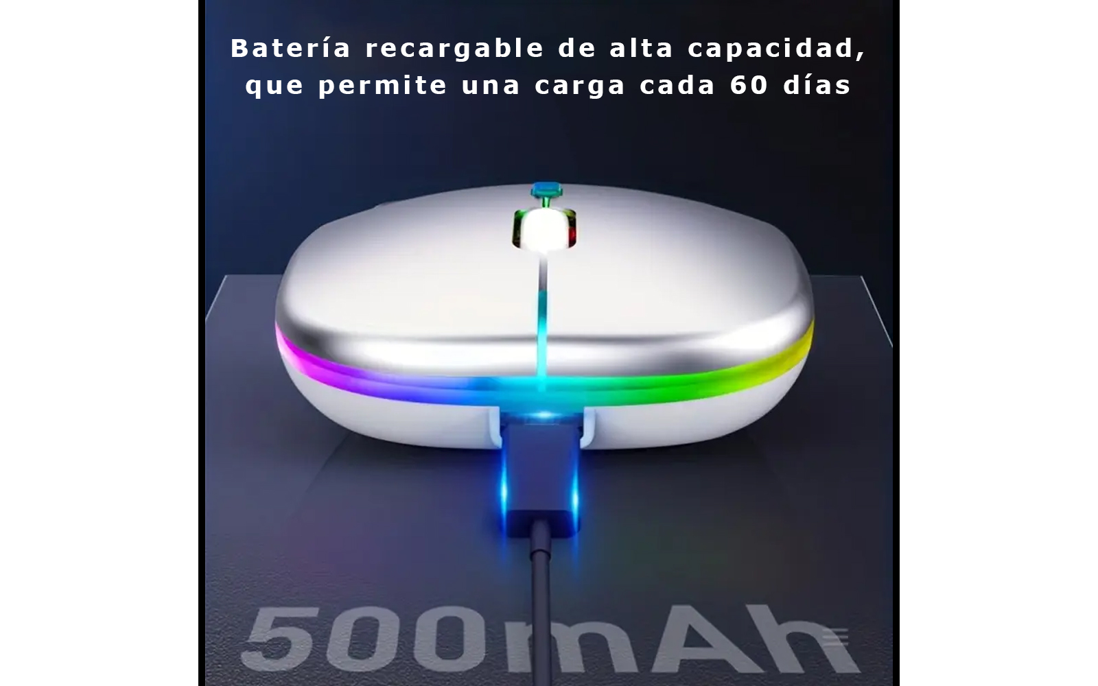 Mouse Inalámbrico Óptico Bluetooth Recargable RGB con 3 Botones + Llave USB Opcional